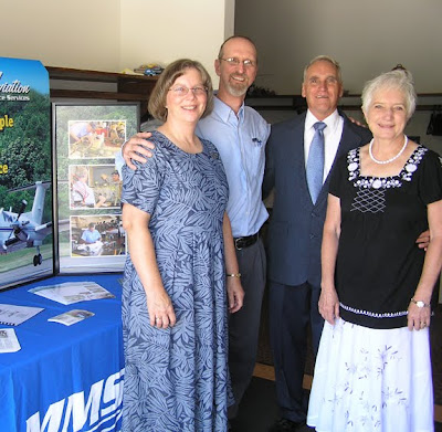 Our lunch with supporters yesterday went very well. We had a great time, enjoyed a wonderful lunch of barbecued steak, fresh corn on the cob, Parmesan potatoes, fresh tomatoes, and green salad followed by fresh peaches for dessert. We updated on MMS, showed some of the video clips I've put together this year, and enjoyed our host's photo album of his years as an aircraft mechanic during the Korean War. Karen and his wife had conversations about girl stuff while we talked airplanes. It was fun hanging out with them even if I did bang my head twice on the oil lamp hanging from the ceiling in the living room. Their farm house was built in the 1870's.